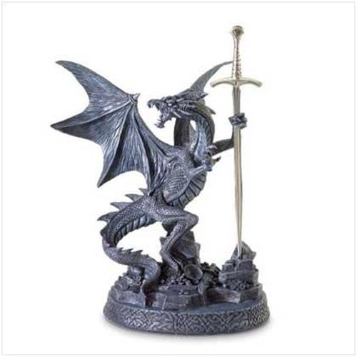 Warrior Dragon Sword Stand Letter Opener With Excalibur Sword The Warrior Dragon Has Been Constructed From Poly Resin A Slit In The Back Of The Dragon Allows The Sword To Be Mounted