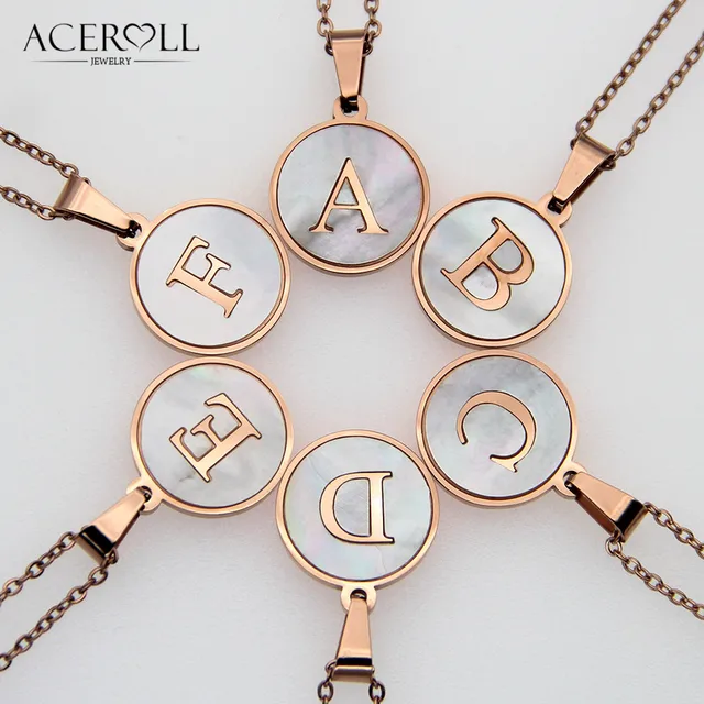 Aceroll Stainless Steel Initial Letter Pendant Necklace With Mother Of Pearl In Rose Gold Color For Women Alphabet Name Pendant Necklaces Aliexpress