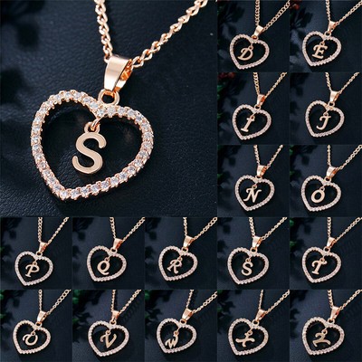 Love Heart Alphabet Charm Pendant Necklace Initial Letter Rose Gold Ebay