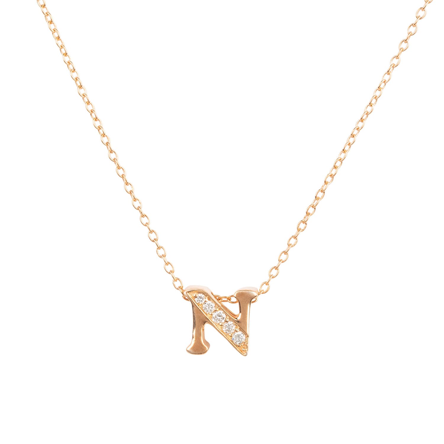 14k Rose Gold Letter Script N Diamond Initial Pendant Necklace