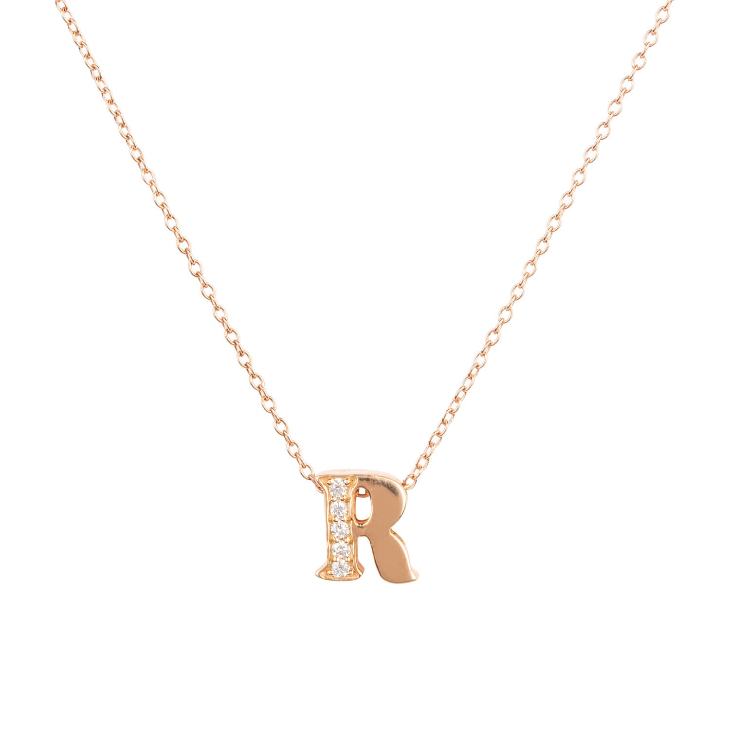 Diamond Initial Letter Pendant Necklace Rose Gold R Latelita Wolf Badger