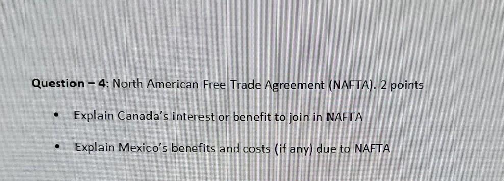 Solved Question 4 North American Free Trade Agreement Chegg Com