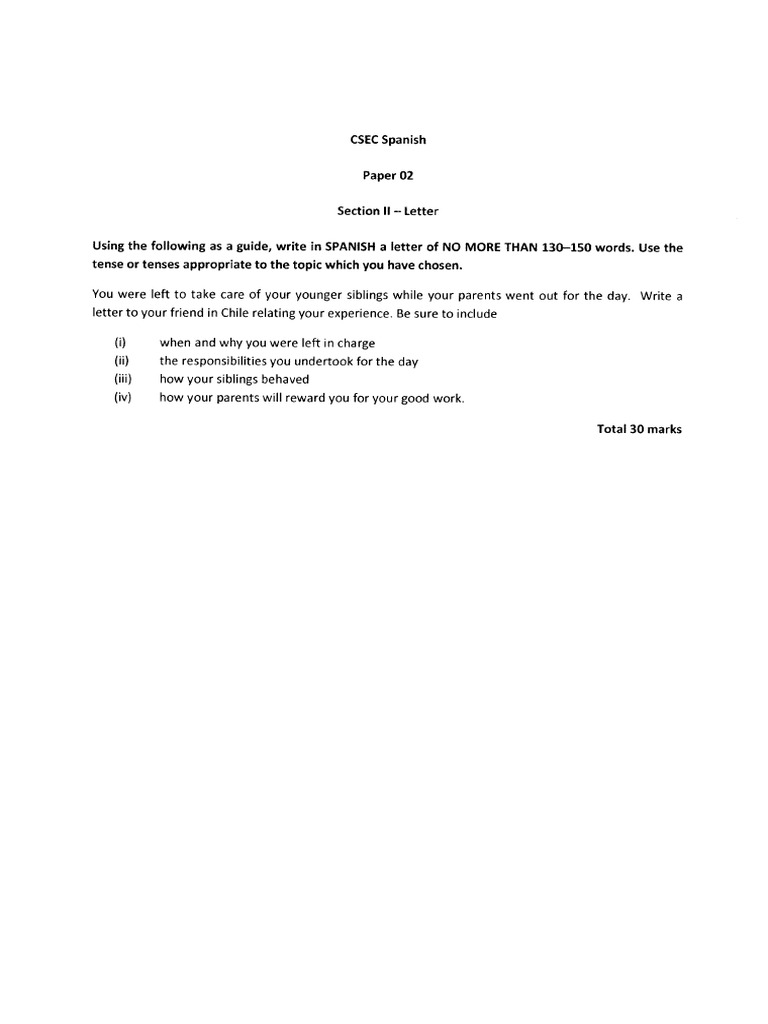 Csec June2011 Spanish Paper2 Sectionii Letter Ex Grammatical Tense Languages