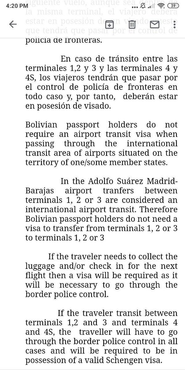 Sian Cowman On Twitter Bolivian Citizens Need A Visa To Visit Spain But Not To Transit Through Terminals 1 2 Or 3 Of Madrid Barajas Airport Once They Have No Checked Luggage