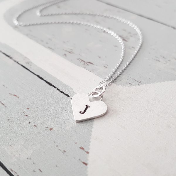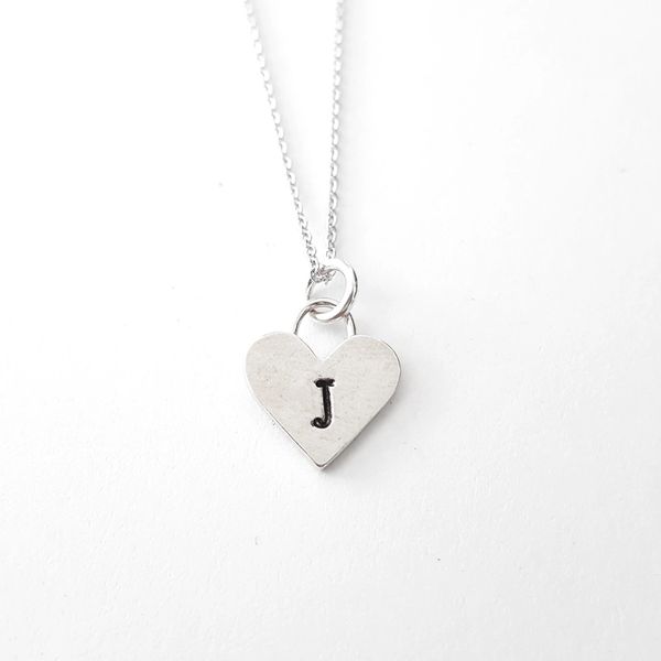 Sterling Silver J Letter Heart Necklace Silver Tiny Stamped J Etsy